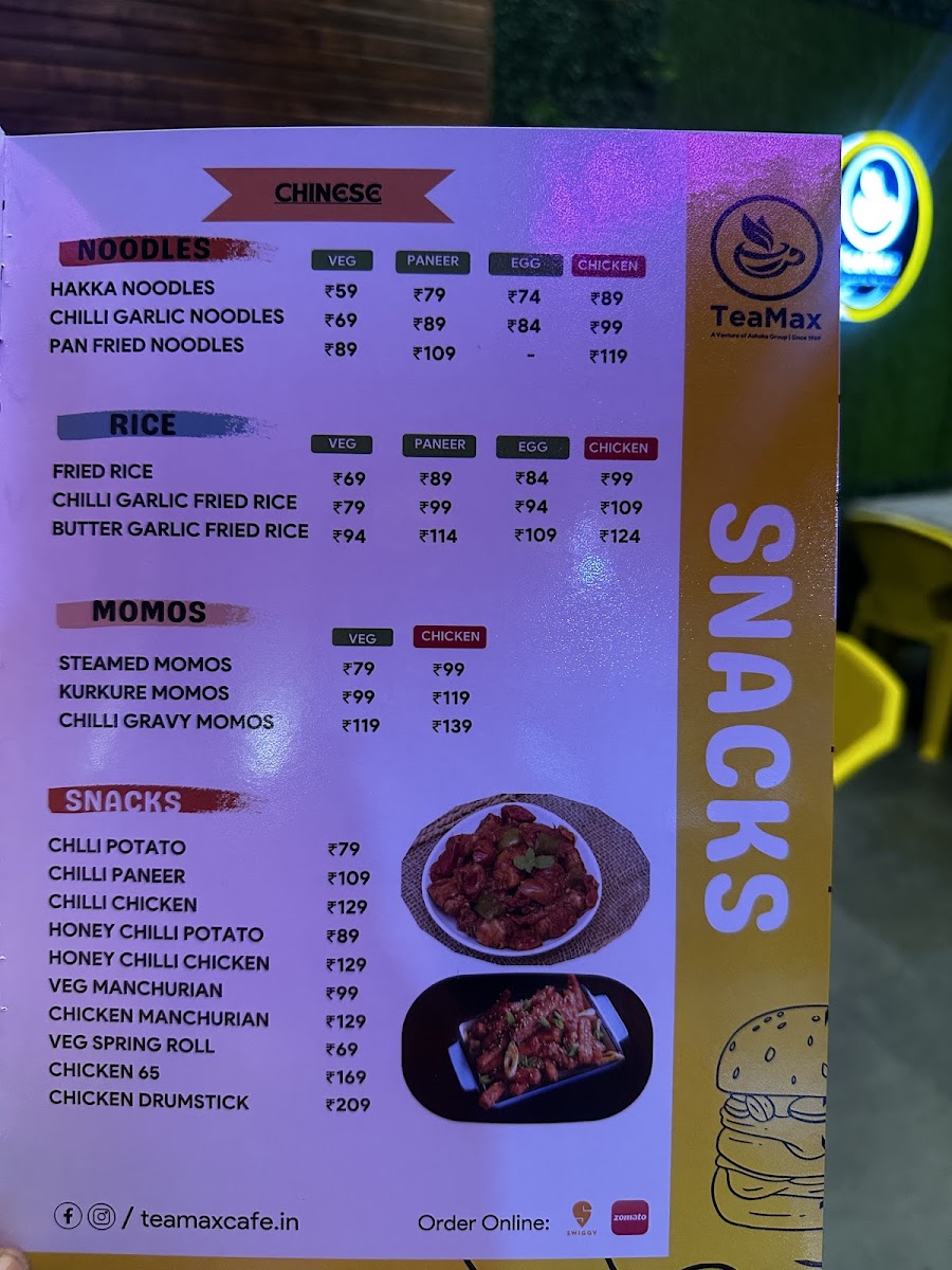 TeaMax boasts a diverse menu that caters to a variety of palates. Start your culinary journey with their mouthwatering Loaded Veg Sandwich and explore delightful options like the Paneer Corn Sandwich or indulge in a satisfying Chicken Sandwich for just ₹129. The wraps are equally tempting, with the Veg Wrap priced at only ₹89 and the flavorful Paneer Wrap and Chicken Wrap available for ₹119 and ₹129 respectively.